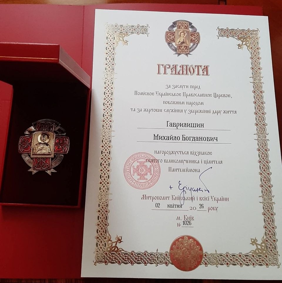 Щиро вдячний за високу відзнаку - орден Святого Пантелеймона. Для мене це велика честь, довіра та натхнення працювати ще відданіше на благо людей.