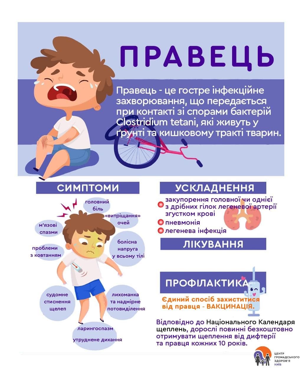 В Україні щорічно реєструються випадки правця. Впродовж 2023 року було зареєстровано 6 випадків цієї недуги: у Вінницькій (1), Івано-Франківській (1), Львівській (1), Миколаївській (2) та Черкаській (1) областях. В 2024 році – 12 випадків: по 1 випадку в Чернівецькій, Черкаській, Одеській , Івано-Франківській областях, по 2 випадки – Миколаївській, Тернопільській, 3 випадки – Львівській областях.